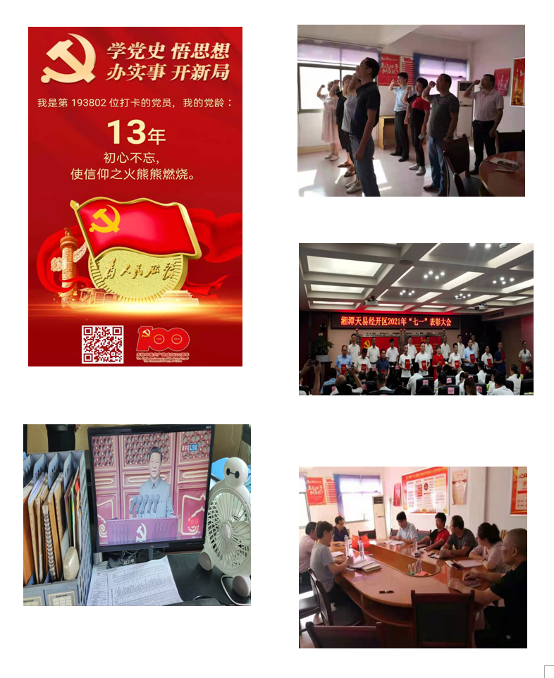 慶祝中國共產(chǎn)黨成立100周年大會于7月1日上午8時在北京天安門廣場隆重舉行。湘潭市冶金設(shè)備公司黨支部組織全體黨員干部、入黨積極分子齊聚觀看慶祝大會直播。大會前,全體人員肅立向黨旗鄭重宣誓,奮發(fā)有為,不忘初心。在建黨百年之際,我們將按照“一個引領(lǐng),兩個堅定”的工作思路要求,知重負(fù)重、攻堅克難,努力為公司的發(fā)展再創(chuàng)佳績。