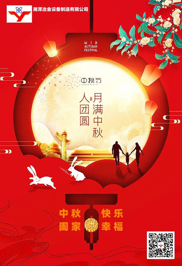 值此中秋佳節(jié)到來(lái)之際,湘潭市冶金設(shè)備制造有限公司謹(jǐn)向一直陪伴公司成長(zhǎng)、不離不棄的各界朋友、合作伙伴、全體家人們致以深深的感謝與崇高的敬意,并祝大家:佳 節(jié) 愉 快!月圓人圓家圓圓圓滿滿!
