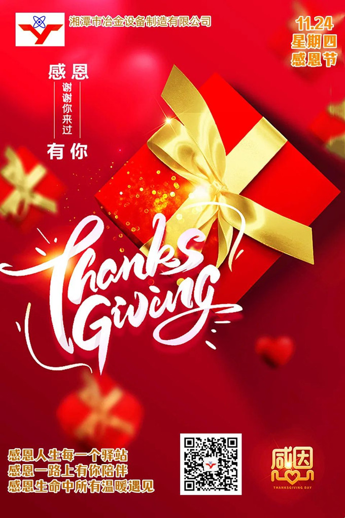 感恩節(jié)里,湘潭冶金設(shè)備衷心感謝那些一直堅守在身邊的人——員工、客戶、朋友、供應(yīng)商、合作伙伴,以及所有支持與信賴我們的人。正是因為這所有人的不離不棄、攜手同行,才讓我們心中常駐溫暖,縱使獨(dú)行也不孤單,成長為國內(nèi)冶金礦山設(shè)備專業(yè)定制的佼佼者。