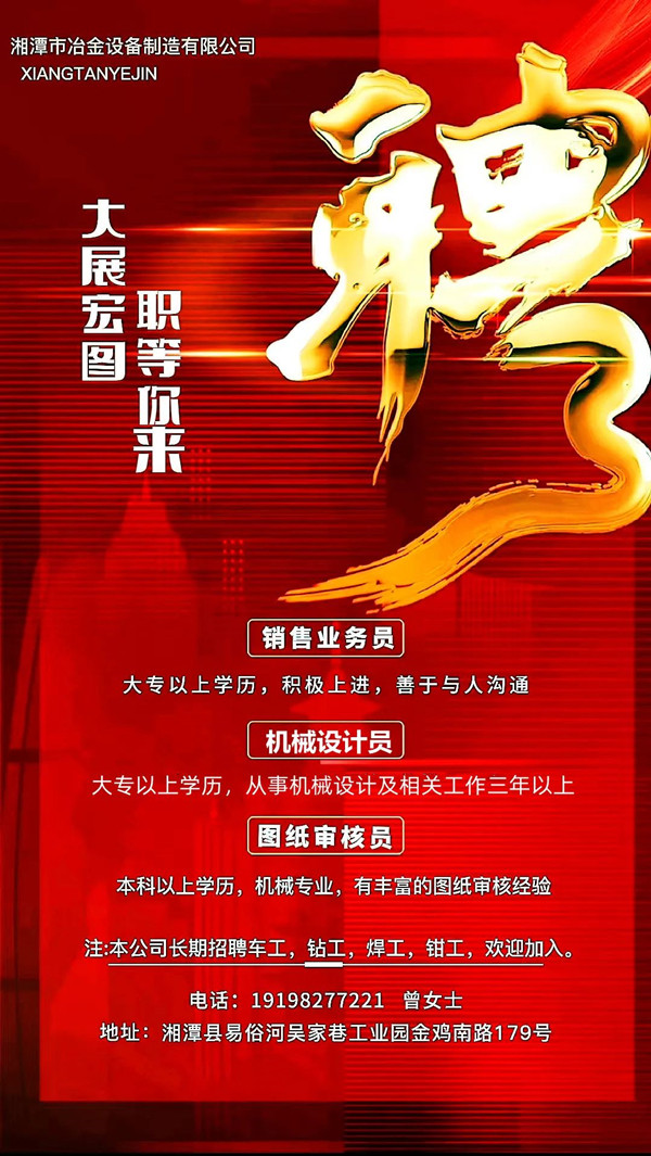 湘潭冶金設(shè)備廣招英才,