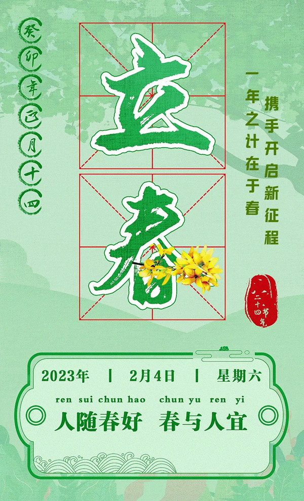 立春是時序輪轉(zhuǎn)、日夜更迭的光陰里最有儀式感的一天。對古人而言,春耕如晨鐘,秋收似暮鼓,立春寓意“盛大”——立春即歲首,舊的四時結(jié)束,新的四季開始。在這美好的時節(jié),湘潭市冶金設(shè)備期待與各位客戶、伙伴和朋友們攜手同心,一起贏未來!