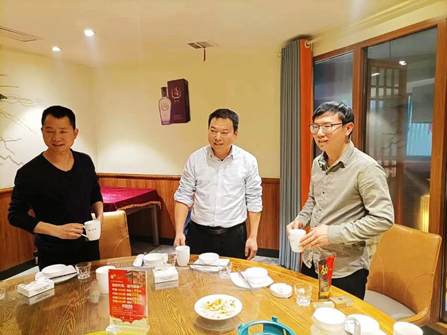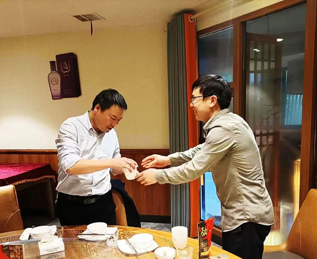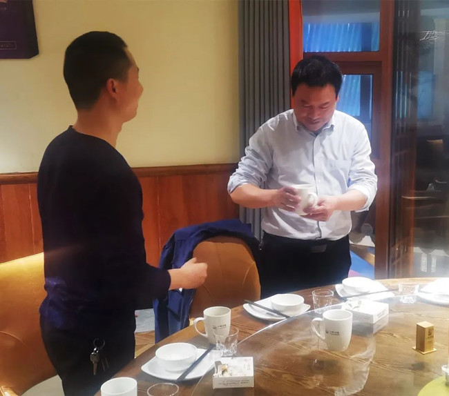在宴會(huì)上,劉洋、丁永繼兩位徒弟向師傅劉美林總經(jīng)理行拜師禮——首先向師傅深深鞠躬:表示在今后的工作中一定誠心、細(xì)心、虛心地向師傅學(xué)習(xí)請(qǐng)教。盡己所能處理和解決工作中的常規(guī)問題,遇事多征求師傅意見;同時(shí)會(huì)多看些企業(yè)管理方面的書籍,也希望在座的各位干部多多指教。接著,兩位向師傅敬茶。