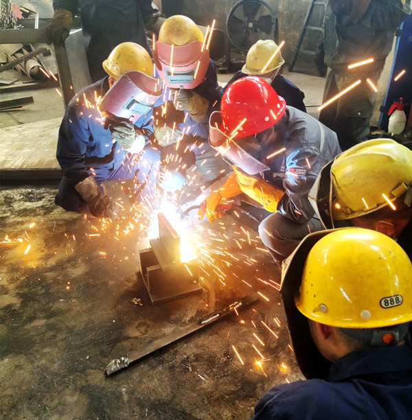 在培訓指導中,熊小軍老師向我廠焊工示范了大焊角、多層多道的標準操作,并提醒在焊接過程中必須注意哪些細節(jié),讓許多人茅塞頓開。在耐心地操作示范和知識講解后,熊老師要求公司焊工對難度系數(shù)較高的焊接環(huán)節(jié)一一進行實操,在實操中及時糾正錯誤的手法和方法,指出焊接缺陷并分析原因,提出解決問題的辦法,手把手傳授經(jīng)驗和技術(shù)。在專家現(xiàn)場指導過程中,熊老師對湘冶焊工扎實的基本功、重質(zhì)重量的工作態(tài)度和虛心求知的精神給予肯定。焊工們也很珍惜這個難得的學習機會,聚精會神聽講,積極提問,深學細悟,從老師的實操和講解中領(lǐng)悟多層多道、大焊角要領(lǐng),個個受益匪淺。