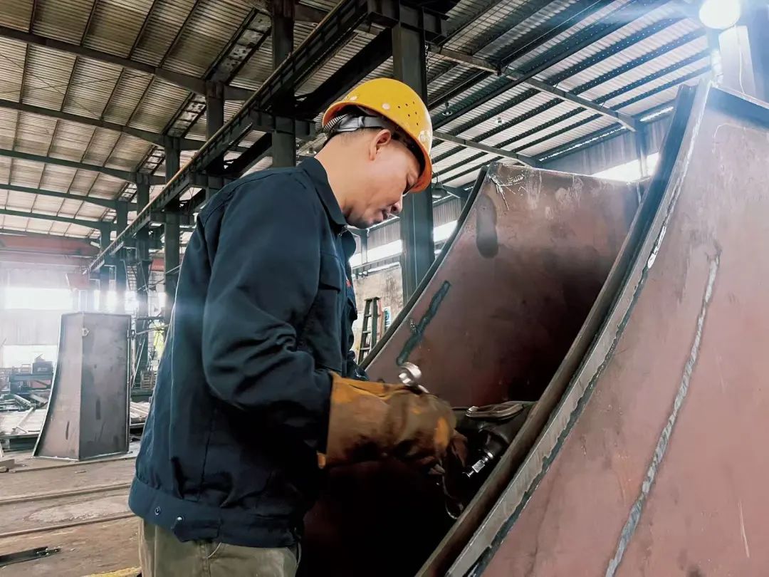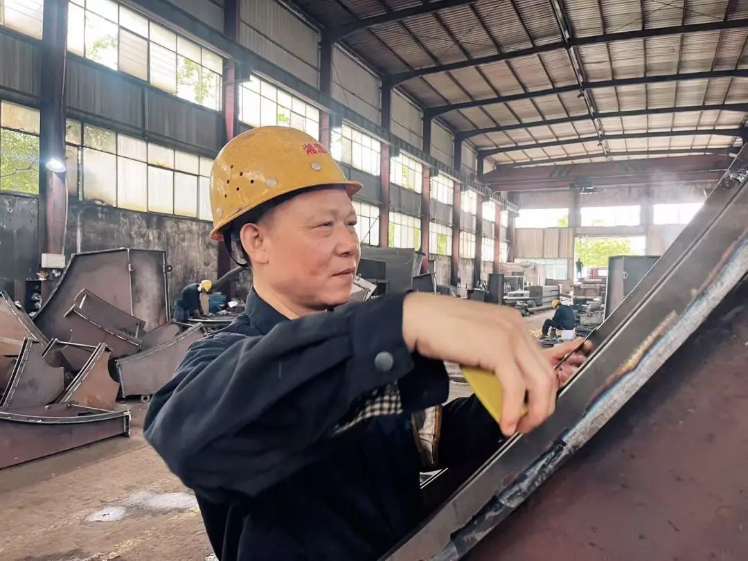 楊襲曾是泰富重工的“一周一打卡”自由職業(yè)者。在行業(yè)寒冬的沖擊下,泰富為了降低成本,不得不采取靈活的用工模式,楊襲在外出尋找工作的過(guò)程中,機(jī)緣巧合之下,最終加入了湘冶。盡管他的身份是勞務(wù)關(guān)系,但這從未限制他的擔(dān)當(dāng)。他憑借精湛的鉚焊技術(shù),成立了這個(gè)充滿活力的班組。在越南滾軸篩項(xiàng)目中,楊襲憑借其過(guò)硬的鉚焊技術(shù),解決了精密焊接中的難題,通過(guò)精準(zhǔn)的電流參數(shù)設(shè)置和獨(dú)特的鉚焊手法,確保了鉚焊質(zhì)量,為項(xiàng)目的順利交付立下汗馬功勞。他不僅技術(shù)過(guò)硬,而且工作態(tài)度認(rèn)真負(fù)責(zé),為班組奠定了堅(jiān)實(shí)的基礎(chǔ)。盡管他并非全職員工,但他對(duì)工作的投入和專注,讓他在車(chē)間里贏得了極高的聲譽(yù)。他深知,只有以身作則,才能帶領(lǐng)班組走向成功。他用自己的行動(dòng)詮釋著什么是敬業(yè)精神,什么是團(tuán)隊(duì)的凝聚力。